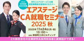 この密着取材の詳細は「エアステージ2026年1月号(2025年11月28日発売)」で紹介します。CAという仕事に興味のある方は、11月24日(月・祝)開催の「エアステージ CA就職セミナー」にもぜひご参加を。ANAとJALの採用担当者や現役CAが登壇し、求める人物像や試験のポイントをたっぷり語ります。今回は会場+オンラインのハイブリッド開催で、アーカイブ視聴も可能。採用担当者や現役CAと直接交流できる会場チケットは残りわずかなので、お早めにどうぞ。
