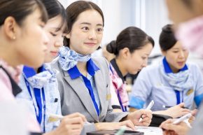 先日発売された航空業界の就職情報誌「エアステージ2026年1月号」ではANAを大特集していますが、取材時に訪れた羽田空港近くの大型総合訓練施設「ANA Blue Base」では、実物大モックアップを使った迫力ある訓練が行われていました。非常用スライドの展開、ドア操作、煙が充満した客室での誘導、機外でのサバイバル技能まで、緊張感の中で判断力と行動力が試されます。CAたちは単に手順を覚えるのではなく、「なぜその行動が必要なのか」を深く理解し、乗客の命を預かる職責を体感します。非常時には数秒の遅れが命取りになる――その緊張感こそがCAという職業の本質です。
