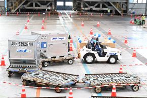 ANAと豊田自動織機は7月16日、羽田空港第2ターミナル側の制限エリアにおいて実施している、レベル4自動運転での完全無人運転による貨物搬送試験運用を報道公開した。