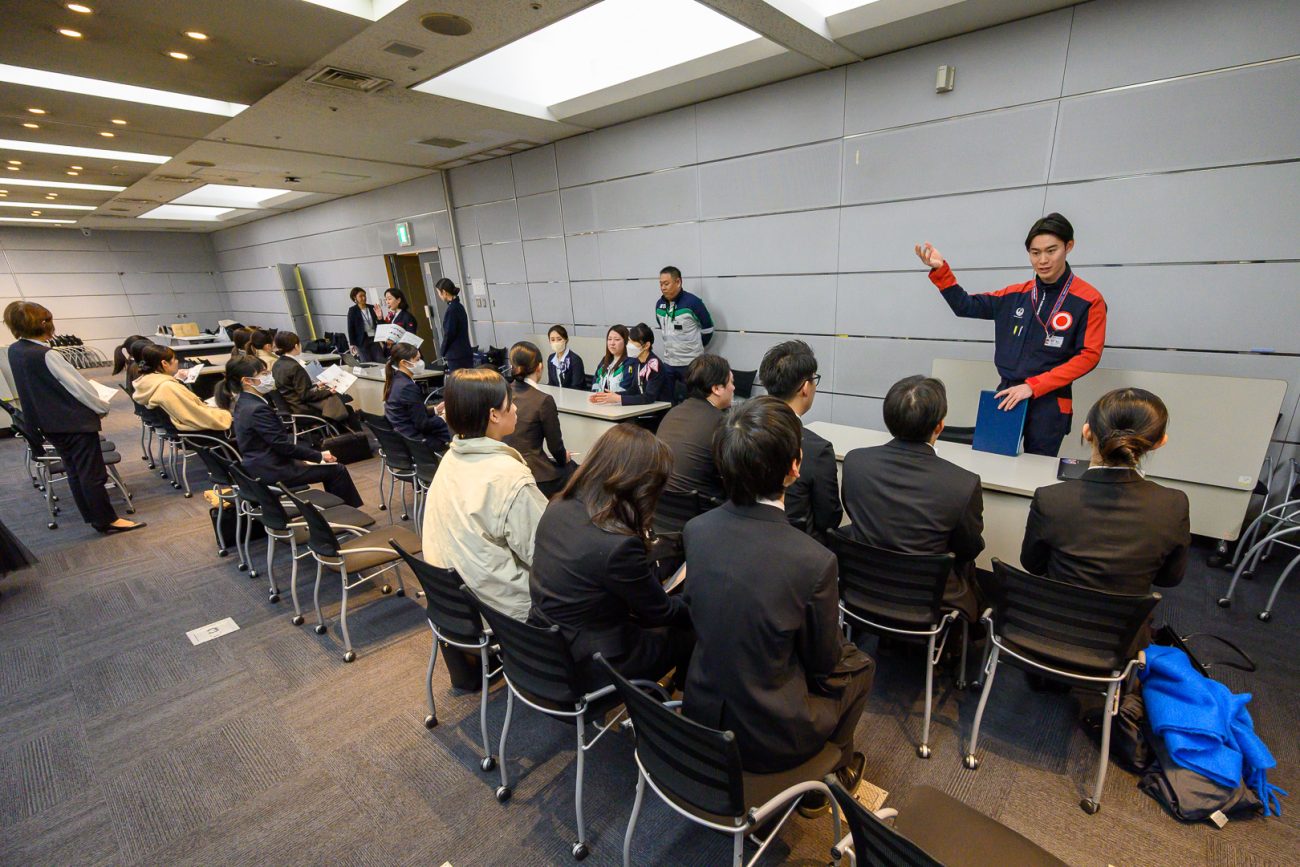 空ハン協会員の事業者と学生が会し、グランドハンドリング業界そのものの認知度向上を図るとともに、その魅力や、やりがい、空港で働くことについて、現場の声とともに理解してもらおうというものだ。また、実際に就職先として興味を持つ学生と、参加事業者とのマッチングも目的としている。