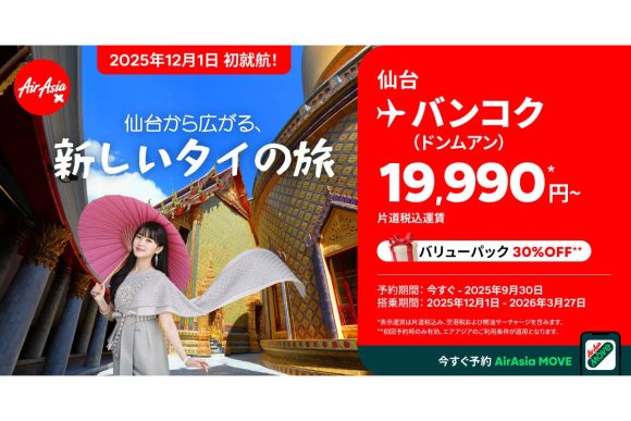 タイ・エアアジア、仙台=バンコク直行便を新規就航!