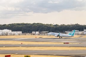 空港の周りで撮影するときに超望遠の長玉(600mmとか)はあんまり使わないのですが、今回はさらに2倍のテレコンバーターをいれて1,200mmに。しかも撮影場所は、滑走路との近さでお馴染みのスカイランドHARADAの駐車場。背景が曇りだろうがなんだろうがお構いなしの接近戦。たまにやると面白いもんです。