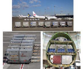 A340の主翼。中央の色が濃い部分がボックスビームで、内部は燃料タンクになっている。