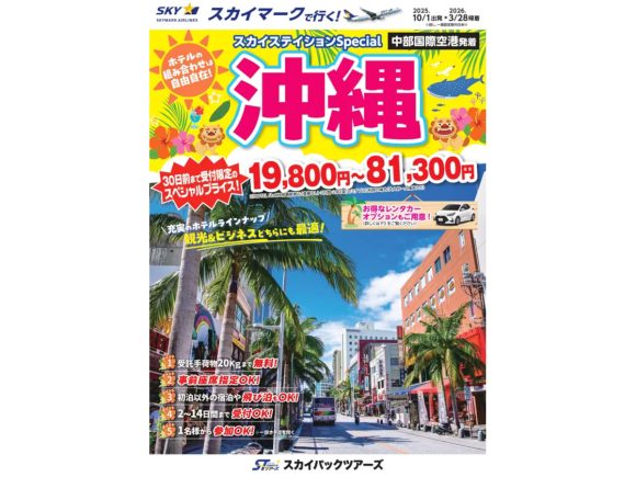 スカイマークを利用したパッケージツアー、3月30日以降出発の「スカイステイション」発売