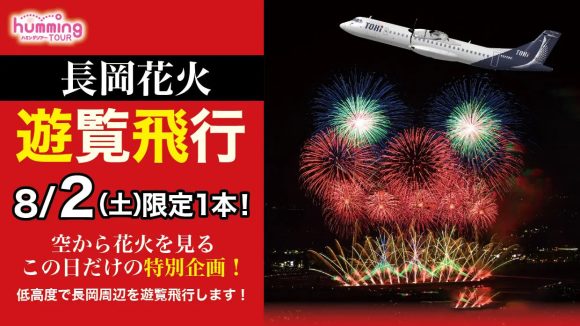 トキエアのATR機の特等席から、長岡花火大会を鑑賞できる遊覧フライト