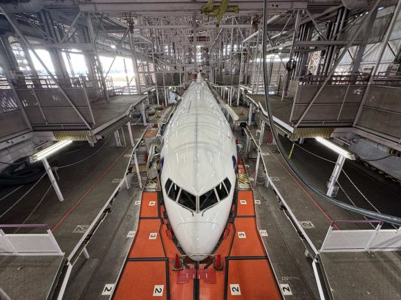 oneworld塗装の777-300ER、JA732Jの退役整備がスタート。羽田のJAL格納庫で売却へ向けた準備が進む