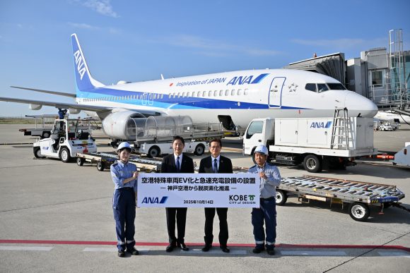 ANA、神戸空港に電動GSE導入。神戸市が急速充電器設置